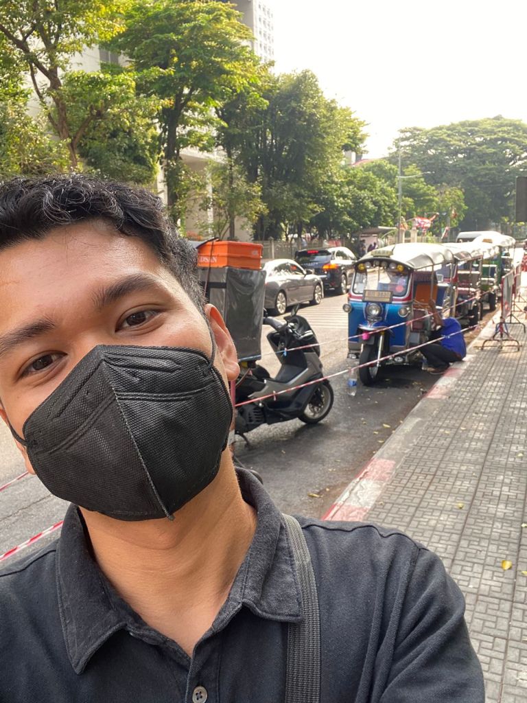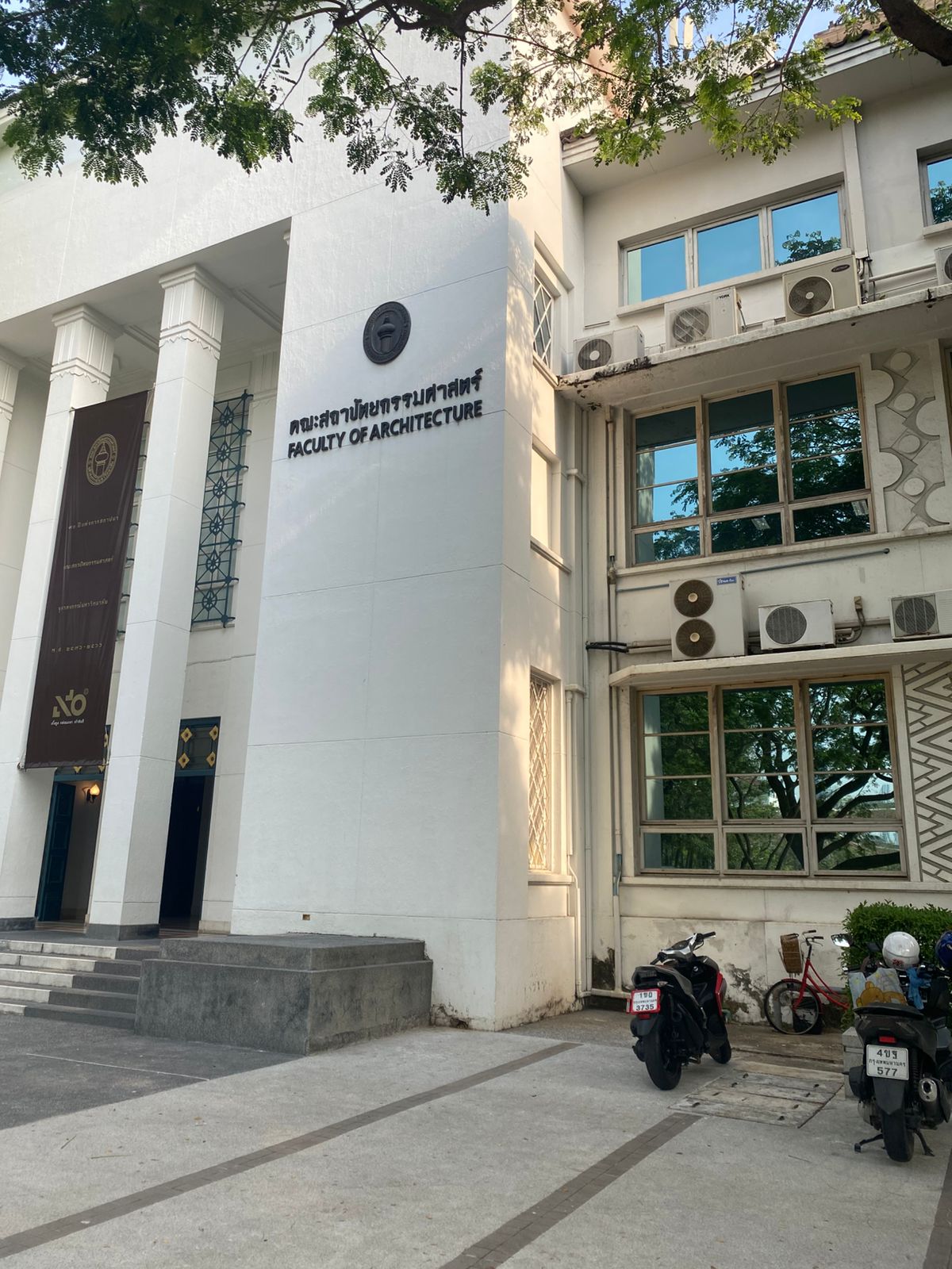 The Faculty of Law had a more serious air, but what caught my attention was the line of tuk-tuks parked out on the side, waiting for passengers. I grabbed a selfie with them—an instant Bangkok postcard.