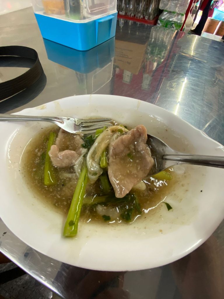 I stopped for a bowl of noodles in a glossy broth, topped with stalks of greens. I never learned its name, but it was hearty and strange in the best way.