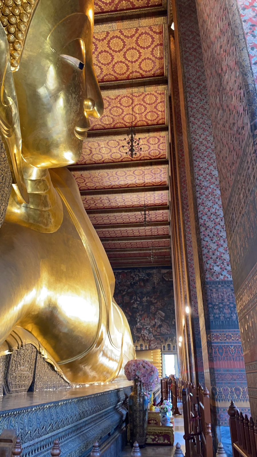After exploring Wat Arun, my new companion and I crossed the Chao Phraya River by ferry to reach Wat Pho, home to the famous Reclining Buddha. The ferry ride was brief but offered a unique perspective of the city from the water.