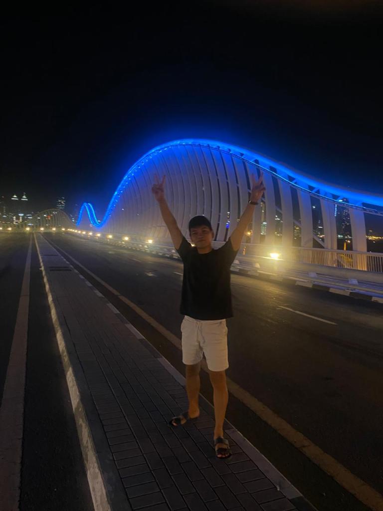 My adventure began with a visit to Al Meydan Bridge. The wavy neon-blue lights caught my curiosity, and I found myself posing there amidst the occasional sports car zipping past. It wasn’t a spectacular landmark, but the energy of the place was definitely worth experiencing.