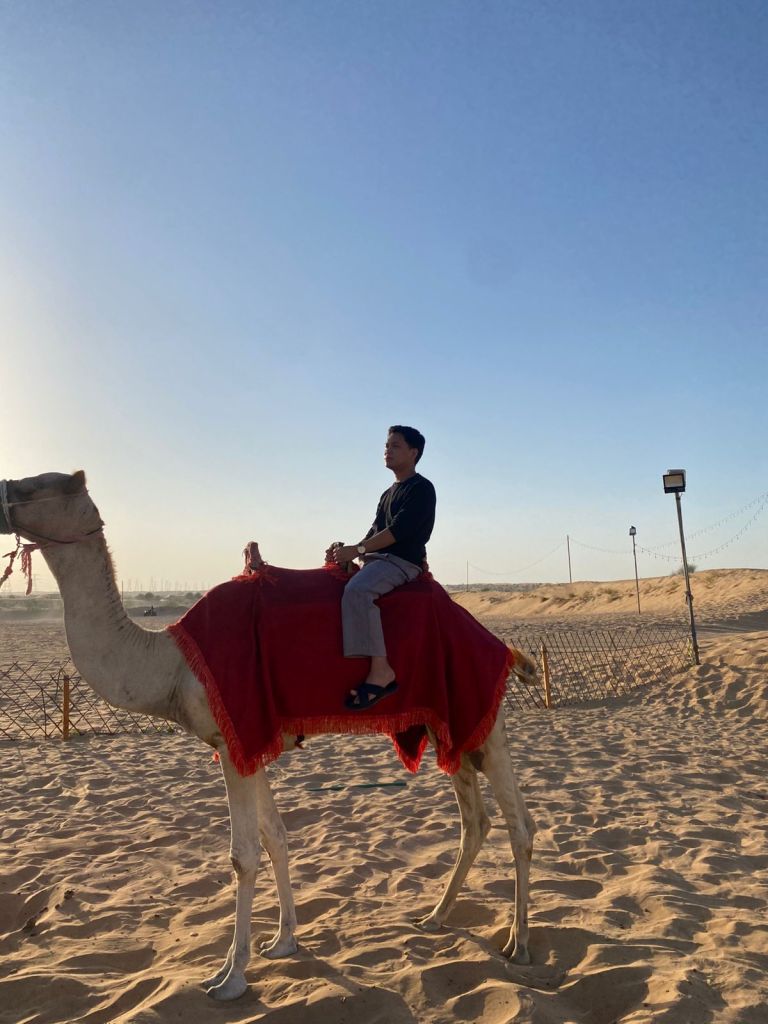 For me, the most memorable part was riding a camel—something I hadn’t done despite living here for years. I wore a traditional keffiyeh (men’s headscarf) to complete the look. Later, I tried the desert quad bike, which added another dose of adventure.